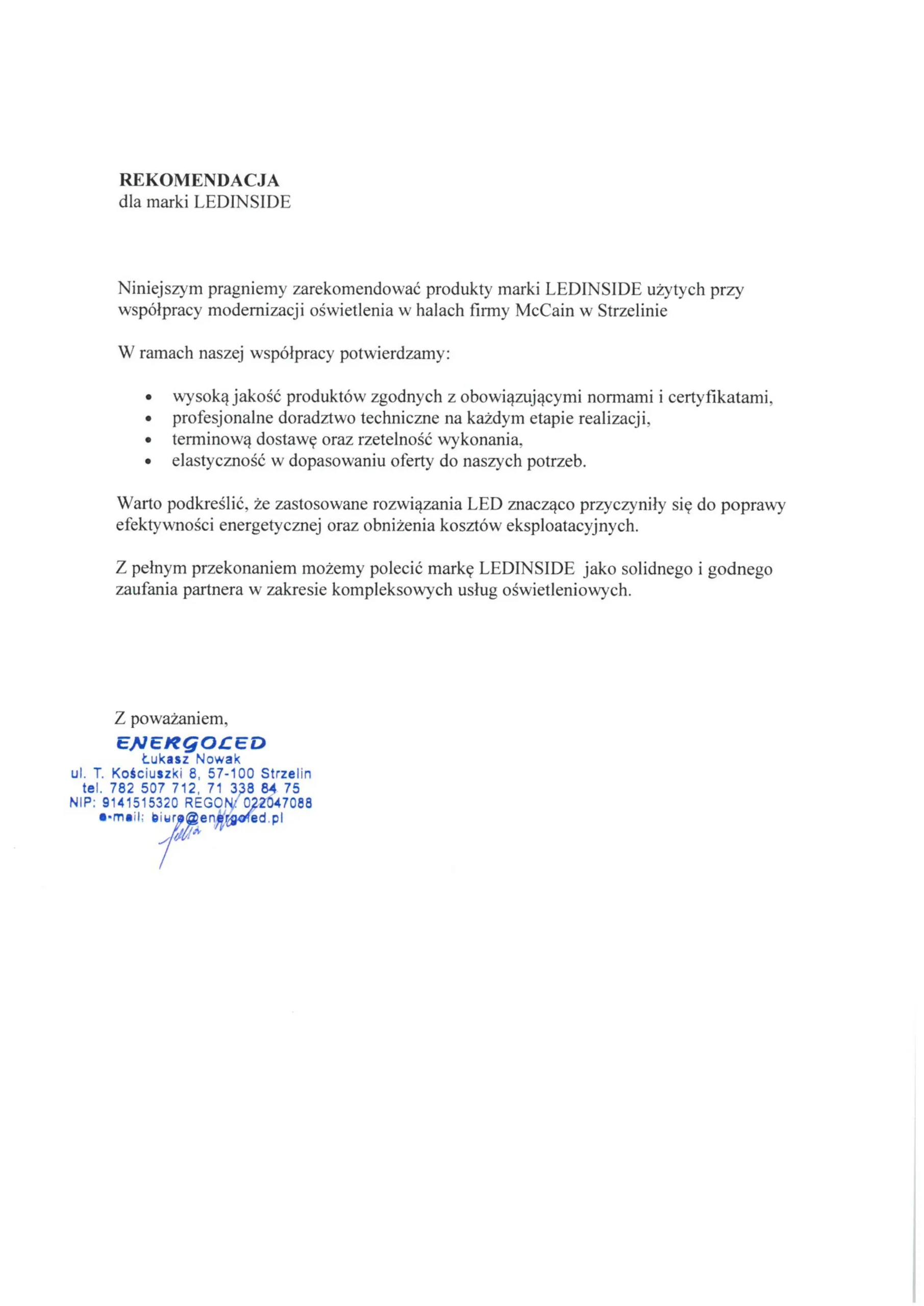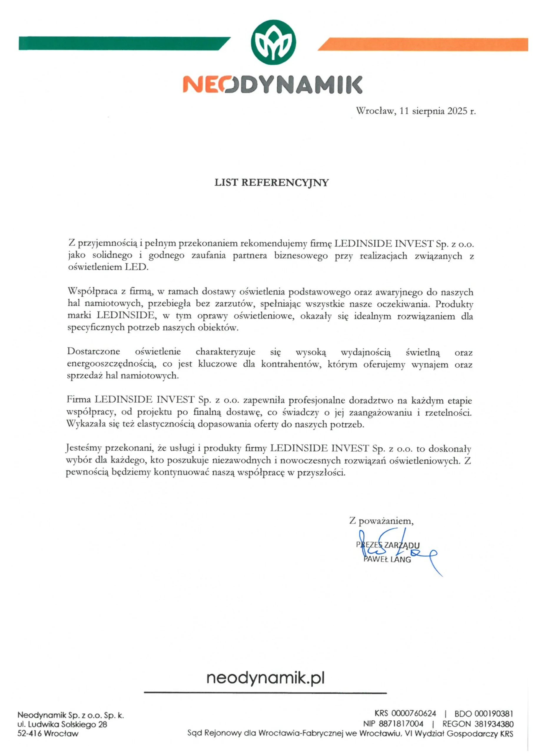 LEDINSIDE to marka oraz firma stworzona przez fachowców z wieloletnim doświadczeniem w branży oświetlenia przemysłowego i komercyjnego. Zrealizowaliśmy setki projektów, łącząc nowoczesne technologie LED z praktycznym podejściem do instalacji i serwisu. Nasze doświadczenie pozwala na skuteczne poprawianie jakości oświetlenia oraz znaczące obniżenie kosztów energii.