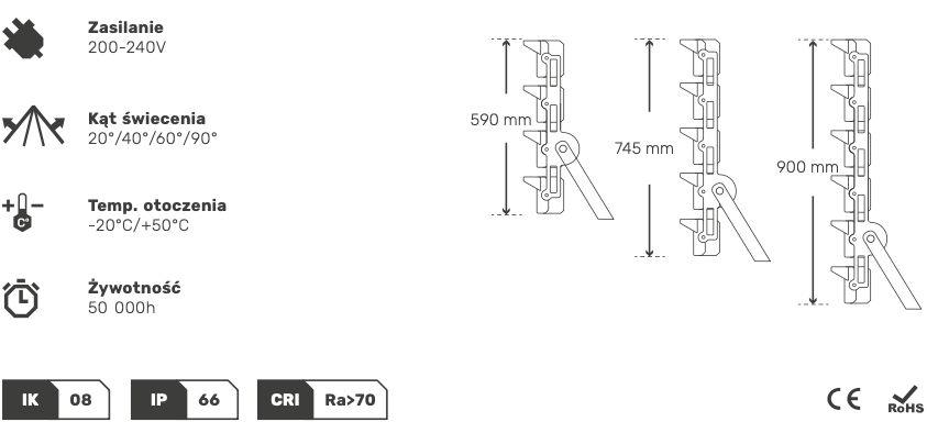 | MODEL | MOC | EFEKTYWNOŚĆ | STRUMIEŃ ŚWIETLNY | BARWA ŚWIATŁA | WAGA |