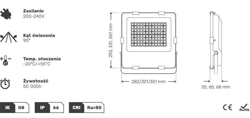Poznaj ZOSMAX – wysokowydajny naświetlacz marki LEDINSIDE z wbudowanym źródłem światła LED, zaprojektowany z myślą o profesjonalnym oświetlaniu wymagających przestrzeni, takich jak hale, magazyny, parkingi, warsztaty czy place i podwórka. Świetnie sprawdzi się również jako oświetlenie architektoniczne. Lampa osiąga rewelacyjną skuteczność świetlną rzędu 190 lm/W, a za jej stabilną pracę odpowiada sprawdzony zasilacz marki Philips (Xitanium). Solidna obudowa wykonana z wytrzymałego aluminium zapewnia doskonałą ochronę przed trudnymi warunkami atmosferycznymi i uszkodzeniami mechanicznymi (klasa szczelności IP66 oraz IK08). Konstrukcja posiada specjalnie użebrowany radiator dla lepszego odprowadzania ciepła, a dedykowane elementy montażowe w zestawie pozwalają na swobodną regulację kąta nachylenia, gwarantując precyzyjne oświetlenie wybranej strefy.